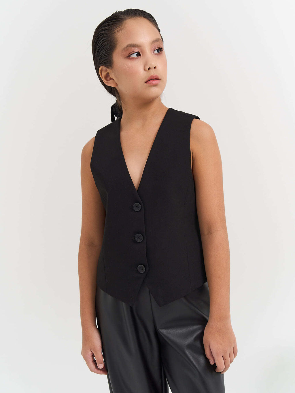 Для элегантных и праздничных образов!Жилет для девочек из костюмной ткани на подкладке. Застежка на пуговицы.