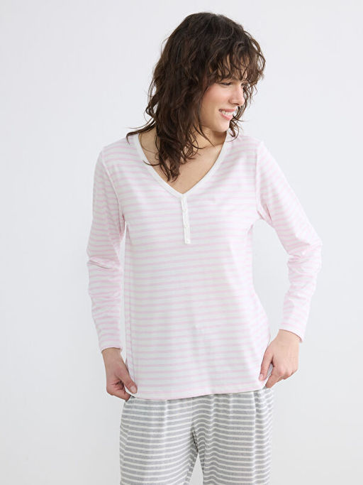 • V Yaka ?izgili Kad?n Pijama ?st?
