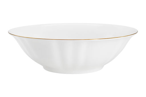 Салатник, 23х6,5 см, 1,35 л, фарфор F, белый, с золотистым кантом, Lotus gold. Материал: фарфор Fine Bone China. Мыть тёплой водой с применением жидких моющих средств. Не использовать в СВЧ и в посудомоечной машине.