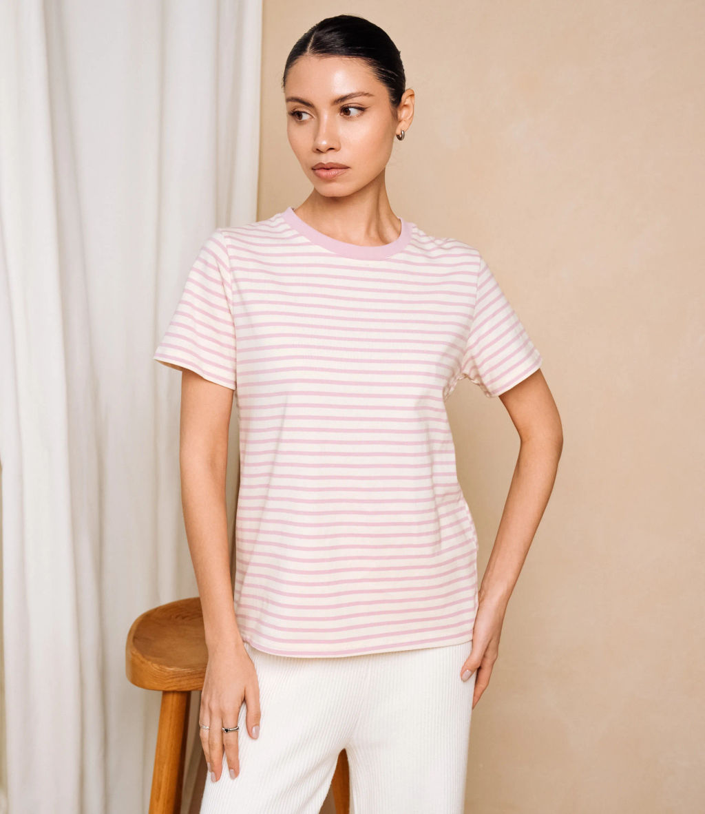Эта футболка прекрасный выбор для вашего магазина, предлагая стильный и универсальный дизайн, который станет отличным дополнением к гардеробу ваших клиентов. Эта модель представлена в классическом полосатом узоре, сочетая нейтральные и приглушенные тона, что делает её универсальной. Футболка с традиционным круглым вырезом и короткими рукавами, свободного кроя, что обеспечивает свободу движений и комфорт. Идеально подходит для сочетания с джинсами, шортами или брюками, а также может быть использована как базовый элемент для создания многослойных образов. Выполненная из ткани с 95% хлопка и 5% полиэстер, футболка обеспечивает отличное качество и приятные тактильные ощущения. Независимо от сезона, она станет любимым элементом в гардеробе ваших клиентов. На странице сайта доступна таблица размеров, что позволит вашим покупателям легко найти подходящий вариант. Установленная цена делает эту футболку доступной для широкой аудитории, что обеспечит вам высокий уровень продаж. Рост модели: 164, параметры: 83-61-89. -- Характеристики -- Цвет: пудровый Пол: Женский Страна производитель: Китай Сезон: Всесезонный Материал: Хлопок, Полиэстер