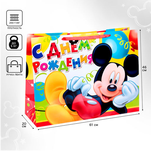 Пакет подарочный «С днём рождения!», 61×46×20 см, упаковка, Микки Маус