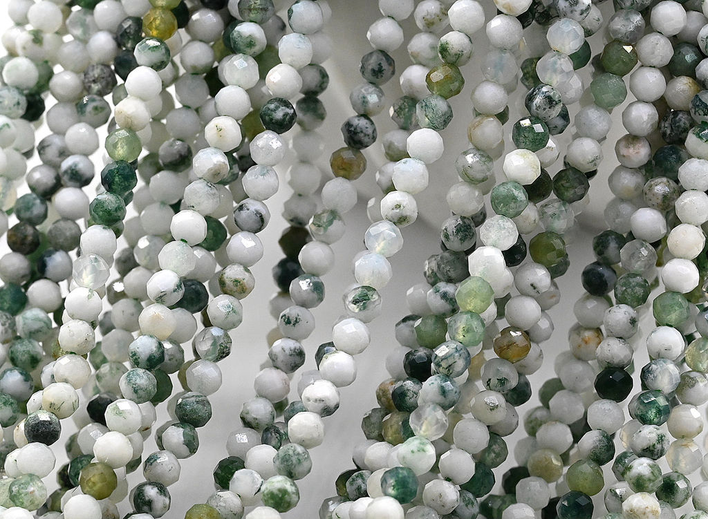 Бусины из натурального камня агата мохового в форме шарика диаметром 3мм с ювелирной огранкой..