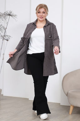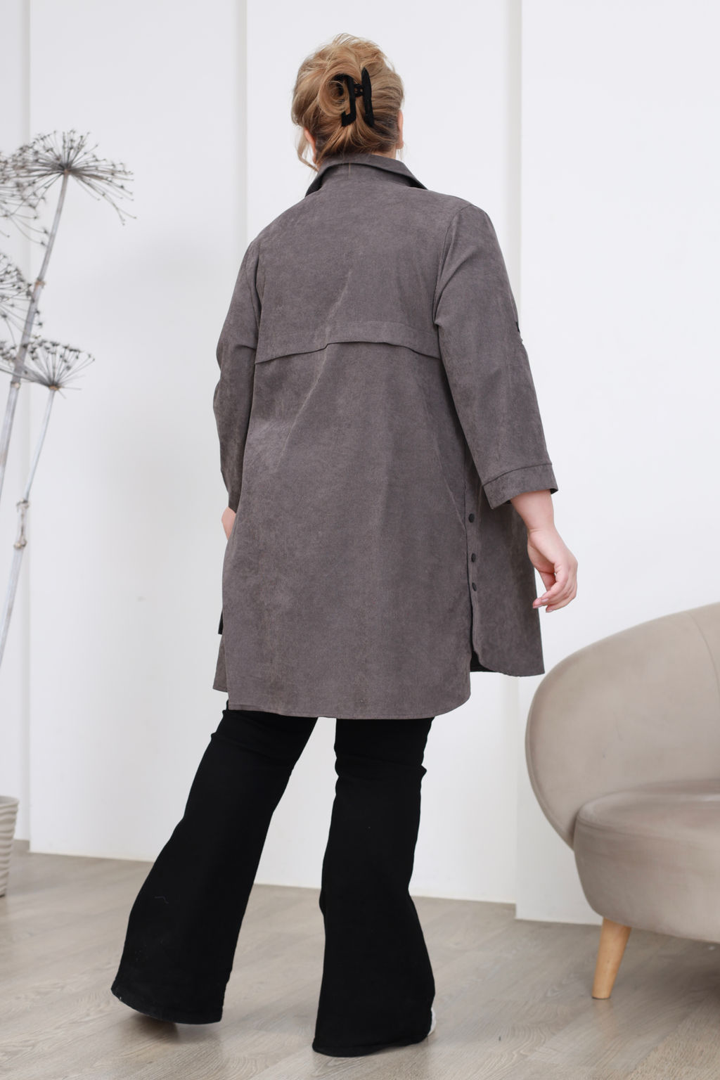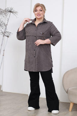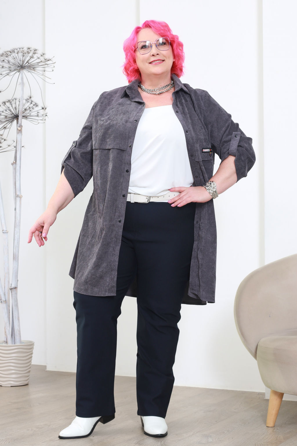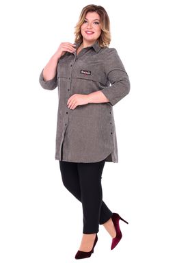 Удлиненная рубашка из мягкого материала. Материал хорошо сохраняет тепло, устойчив к деформации и практически не мнется. Модель прямого кроя имеет классический отложной воротник. Застегивается спереди на кнопки по всей длине. Рукава длиной 3/4 можно красиво присобрать патами. Декоративная планка на завышенной талии и вытачки на груди обеспечивают оптимальную посадку по фигуре. Декоративные контрастные кнопки по бокам добавляют оригинальности. Отлично подходит для комбинирования с узкими брюками и юбками и легинсами.