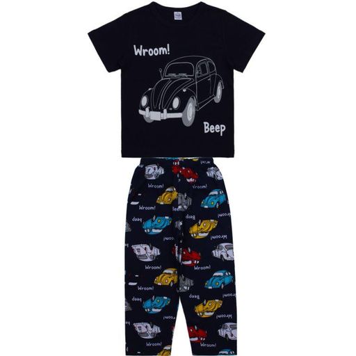 Пижама для мальчика с коротким рукавом из комбинированного полотна с ярким принтом.