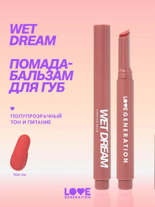 • Love Generation Помада-бальзам "Wet Dream" тон 04 full of love - коричнево-розовый, 1,4 г