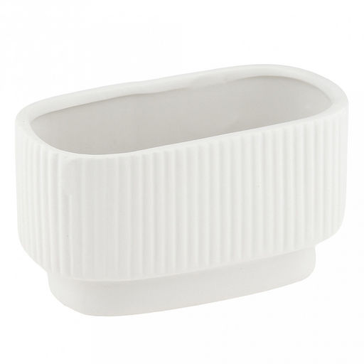• Кашпо для цветов керамическое "Аккорд" 1л, 18,5х9,5х10см, внутренний размер 17,3х8см, фактурный глянец, противоскользящие накладки, белый, в коробке (Китай)