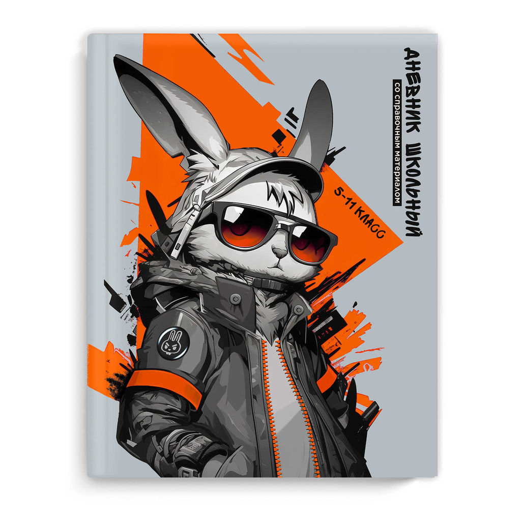 Дневник школьный 5-11 класс арт. 69725 КРУТОЙ КРОЛИК / твёрдый переплёт 7БЦ, А5+, 48 л., тиснение цветной фольгой, глянцевая ламинация, полноцветная печать/печать в одну краску,