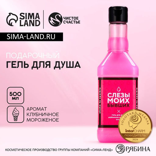 • Гель для душа виски «Слёзы бывших», 500 мл, аромат клубничного мороженого, Чистое счастье