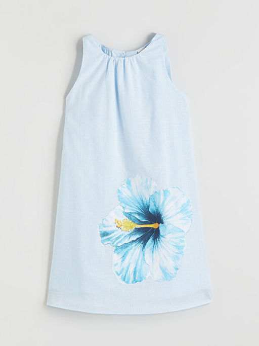 Bisiklet Yaka ?i?ekli K?z ?ocuk Elbise