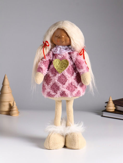 Добавьте нотку нежности и детской непосредственности в ваш интерьер с этой милой текстильной куклой. Её розовое платье с трогательным сердечком и задорные хвостики словно созданы для того, чтобы дарить улыбку и тепло.