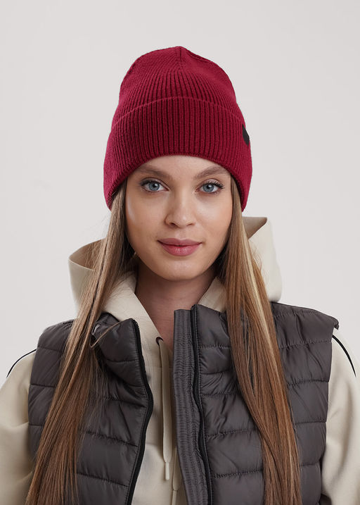 Шапка женская однослойная с отворотом, без подклада. Декорирована стильной нашивкой. Станет не только отличной защитой от холода, но и модным аксессуаром. 50%Вис28%ПЭ 22%ПА(нейлон)