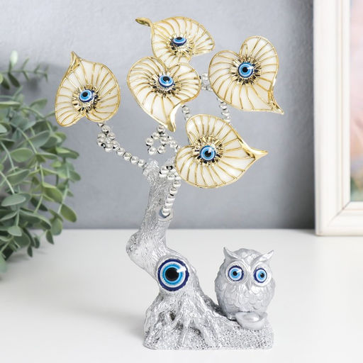 • Фигурка от сглаза «Цветущее дерево, листья-сердце. Филин», серебро, 15×5.7×20 см