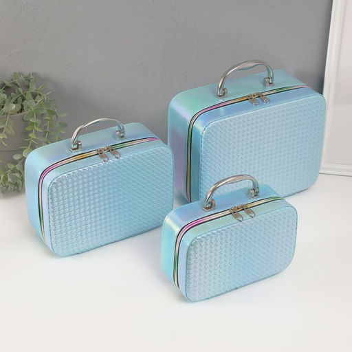 • Набор шкатулок для украшений с зеркалом «Плетение», 3 шт., искусственная кожа, голубая