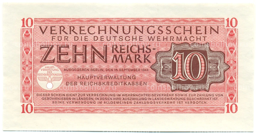 Банкнота 10 рейхсмарок 1944 года Германия (Вооруженные силы Германии)