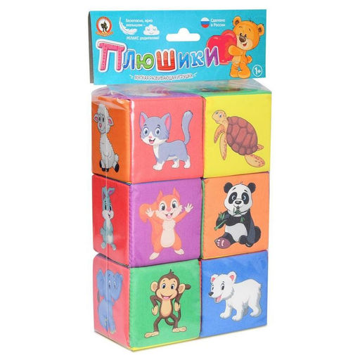 • Кубики мягкие 6шт. "Веселый зоопарк" в пакете (Д-417-18) 1+