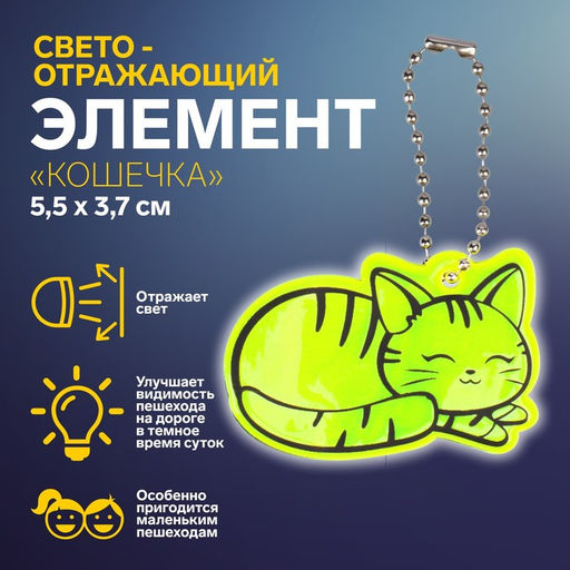 • Цена за 6 шт. Светоотражающий элемент «Кошечка», двусторонний, 5.5×3.7 см, МИКС