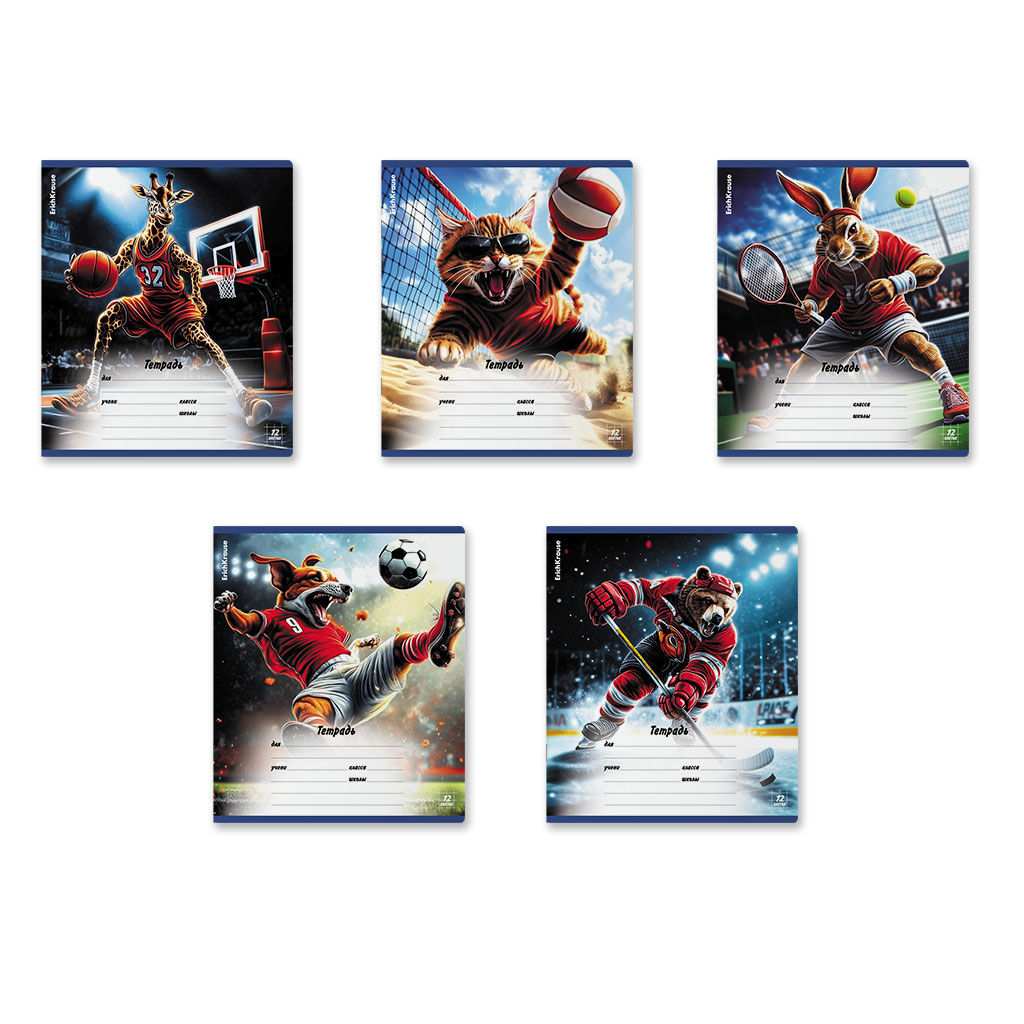 • АКЦИЯ Цена за 10 шт. Тетрадь школьная ученическая ErichKrause Sport Animals, 12 листов, клетка (в плёнке по 10 шт.)_MIX-PACK