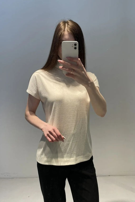 Джемпер из эластичного полотна в мелкий рубчик свободного силуэта. Цельнокроеный короткий рукав. Воротник-стойка с отворотом. Женский джемпер стал незаменимой и популярной разновидностью одежды, которая может применяться буквально во всех случаях жизни.