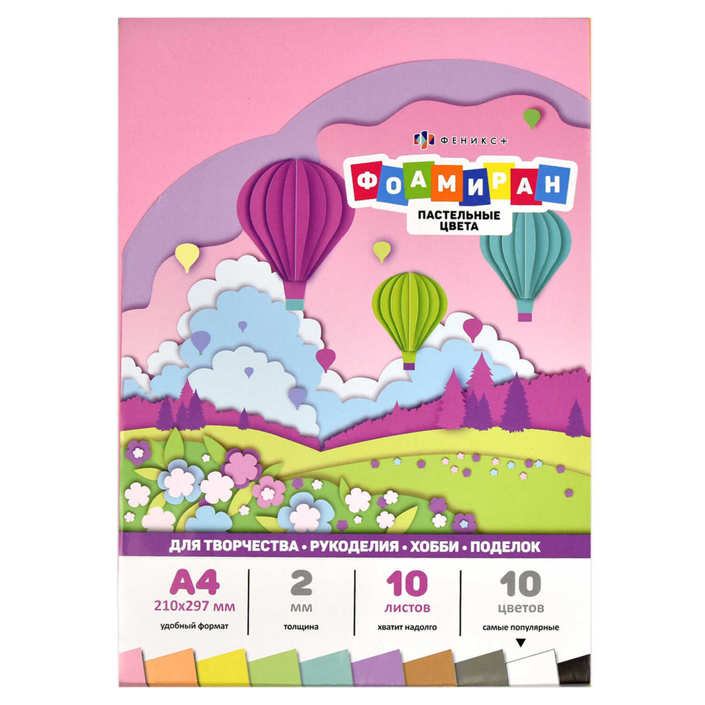 Фоамиран А4, арт. 65995 / 20 ПАСТЕЛЬНЫЕ ОТТЕНКИ (10 ЦВЕТОВ) (размер 210х297 мм, 10 лист/-ов, 10 цвет/-ов, флат-листы из ЭВА толщиной 2 мм; обложка: обложка-вкладыш, мелованная бумага 115 г/м?, полноцветная печать; индивидуальная упаковка: ПЭТ-пакет с европодвесом)