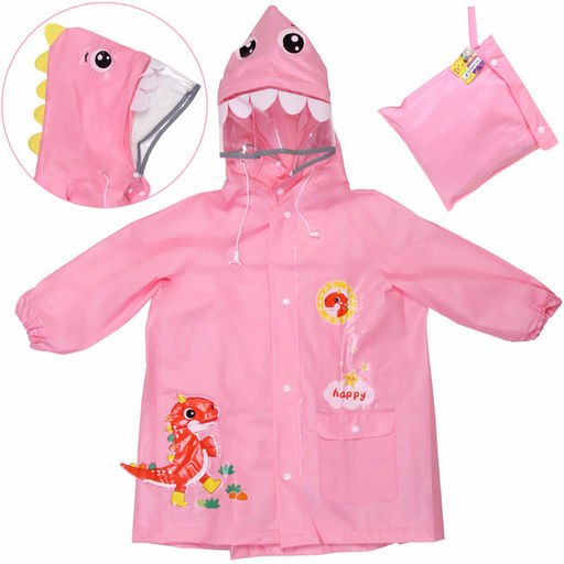 • Дождевик-плащ детский "Рокки-Динозаврик" с капюшоном, рукава на резинке, цвет розовый, размер M(64*46см) ДоброСад