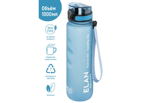 Бутылка для воды Style Matte от Elan Gallery это практичное и стильное решение для ценителей активного образа жизни. Размер ёмкости 7,8х7,8х28,5 см. Высота до крышки 24 см. Объём 1 литр. Изделие выполнено из тритана прочного, безопасного материала, не содержащего бисфенол А. Этот пластик не впитывает запахи и не влияет на вкус напитков. Бутылочка подходит как для холодной, так и для горячей жидкости. Освежитесь любимыми летними напитками в жару или согрейтесь ароматным чаем зимой! Матовое покрытие и углубления для пальцев обеспечивают комфортное использование на прогулке, в офисе и на тренировке в зале. Надёжная крышка с герметичным клапаном препятствует проливанию, а встроенное ситечко позволит заваривать напитки с травами и фруктами. С удобным ремешком бутылку можно закрепить на рюкзаке или запястье это позволяет брать её в путешествия, поездку на велосипеде или автомобиле. Многоразовая дорожная бутылка подходит как для туризма, так и для пикника на природе. Удобная форма делает её не только туристическим, но и спортивным инвентарём. Большая пластиковая ёмкость для питья прекрасный вариант для занятий фитнесом, йогой или бегом в спортзале или на свежем воздухе. Она также дополнит занятия велоспортом в качестве велосипедного аксессуара. Это надёжный помощник спортсменам во время игры в футбол или волейбол, занятий гимнастикой и танцами. Подходит как для взрослых, так и для школьников её можно взять в школу и на занятия физкультурой. Благодаря универсальному дизайну и цвету голубая пастель она подойдёт как девочкам, так и мальчикам в качестве школьного аксессуара. Функциональная бутылка в дизайнерской картонной упаковке это готовый подарок для женщин и мужчин. Не подходит для микроволновой печи, посудомоечной машины и стерилизатора. В коллекции бренда Элан Галерея представлена разнообразная посуда и товары для дома на любой вкус. Спортивные аксессуары из серии Style Matte помогут следить за водным балансом, где бы вы ни находились!