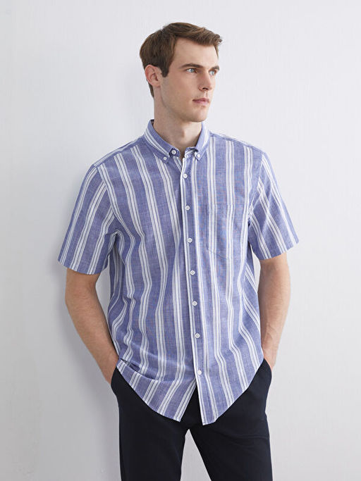 Regular Fit K?sa Kollu ?izgili Erkek G?mlek