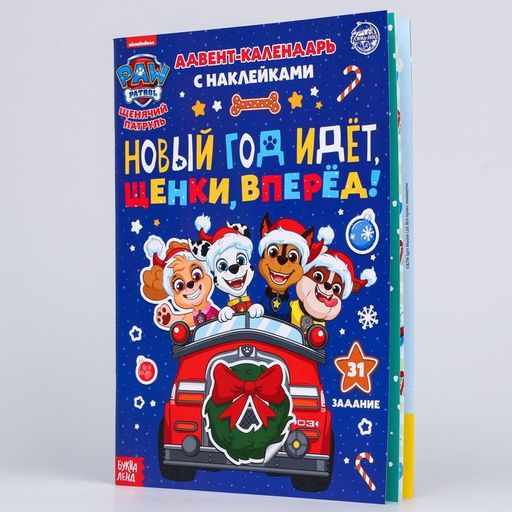• Книга с наклейками Адвент календарь. Новый год идёт, щенки, вперёд!, 24 стр., А4