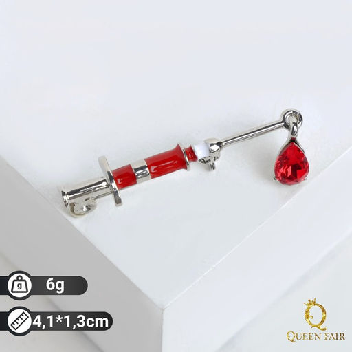• Брошь «Шприц» медицинский, цвет красный в серебре