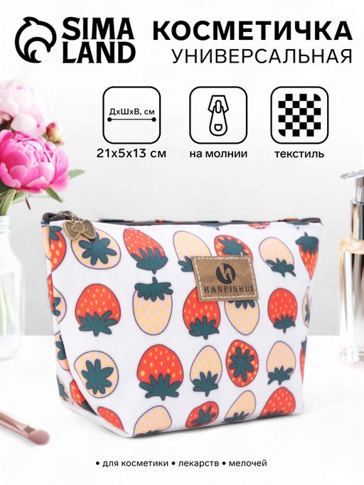 Для кого: Для девочки. Количество отделений: 1. Вид застёжки: Молния. Тематика: Ягоды. Рисунок: Да. Размер: Средний. Особенности косметичек: Цветные. Особенности косметичек: С рисунком. Бесплатная доставка: Да. Размеры товара: 5/13/21. Примечание: Оттенок данного товара может незначительно отличаться от фото/видеоизображения (в зависимости от настроек яркости вашего экрана)..