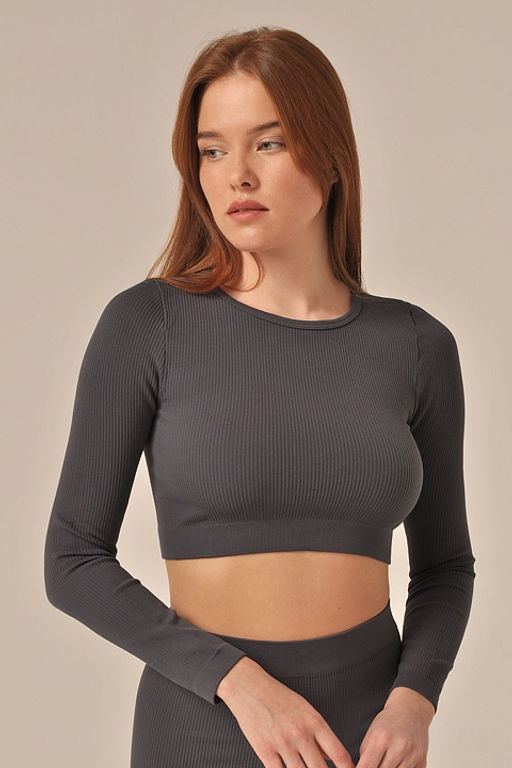 Кроп-топ с длинным рукавом в рубчик, выполнен из мягкой фактурной микрофибры. Бесшовная технология изготовления обеспечивает комфортную посадку по фигуре и удобство в течение всего дня. Идеальный вариант для городских образов и занятий спортом. Не оставляет следов на коже, не вызывает раздражений и не накапливает внешние аллергены. Не мнется и не требует глажения.­