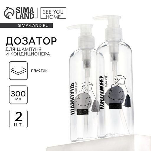 • Дозатор для шампуня и кондиционера I love my body, 300 мл, 2 шт.