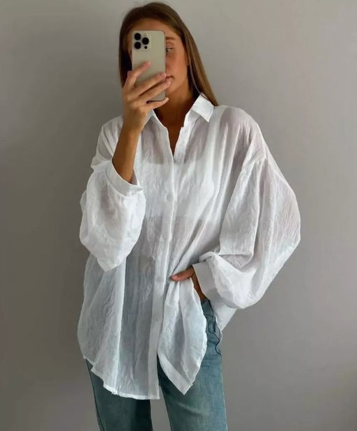 K11779 Рубашка марлевка OVER SIZE БЕЛЫЙ