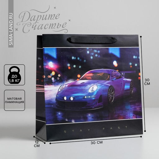 • Пакет подарочный ламинированный квадратный, упаковка, Stay Fast, 30 х 30 х 12 см