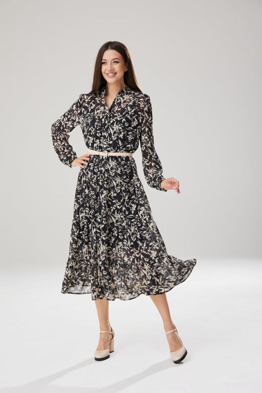 Состав: ПЭ-100%; Невероятное стильное платье А-силуэта из шифона на подкладке-комбинации достойно самых высоких похвал! По переду платья нагрудные вытачки, притачные планки с функциональной застёжкой на петли-пуговицы. Пуговицы могут отличаться от заявленных на фото. Горловина обработана воротником-стойкой. По переду и спинке три притачных волана со сборкой. Шикарная посадка по фигуре. Длина платья по спинке от горловины до низа 120,5см. Рукав втачной, одношовный, со сборкой по низу, с притачной манжетой, высотой 4см, на функциональную застёжку петли-пуговицы. Пуговицы могут отличаться от заявленных на фото. Длина рукава с манжетой от плечевого шва 62,5 см. Декор съёмный ремень подчёркивает изящество фигуры, может отличаться от заявленного на фото. Подкладка-комбинация из трикотажной подкладки. По переду нагрудные вытачки на бретельках. Горловина и пройма обработаны обтачкой. Это стильное платье станет неотъемлемой частью Вашего гардероба. Цвет платья может отличаться на полутон от заявленного на фото. -- Характеристики -- Состав: ПЭ-100%; Сезон: Осень-Зима Рост: 164 Страна бренда: Беларусь