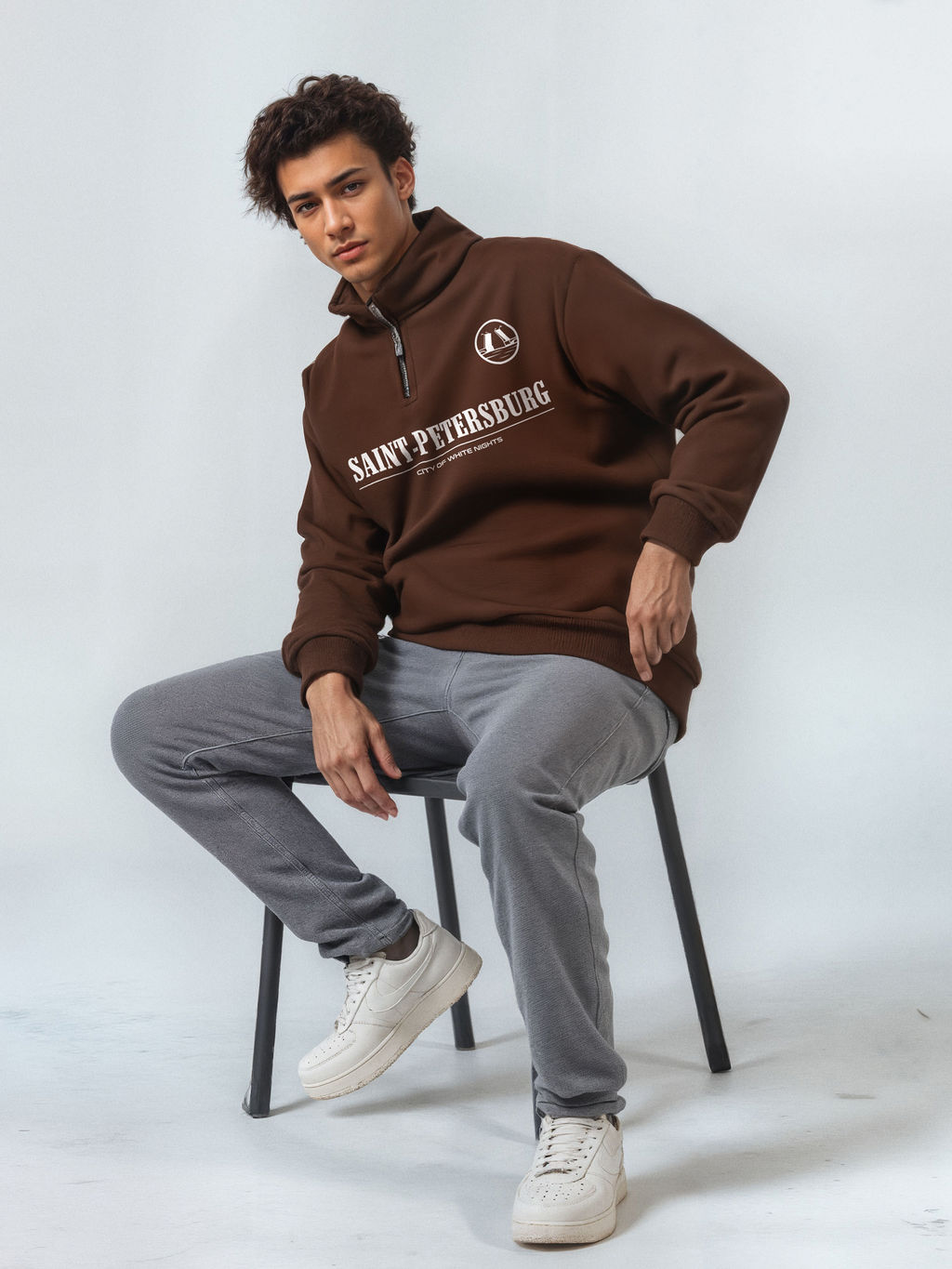 Толстовка мужская с зип-воротником "Saint Petersburg" коричневый