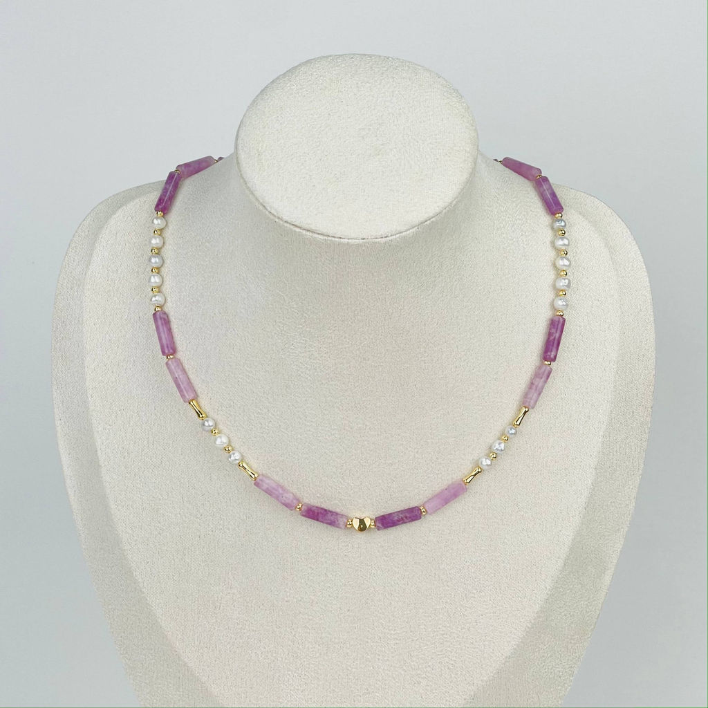• Колье из Лепидолита и Жемчуга 40 см +
