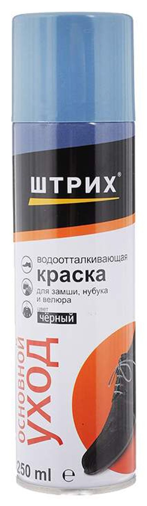 ШТРИХ ОСН.УХОД краска д/замши,нубука,велюра водоотталк.аэрозоль 250мл Черный NEW