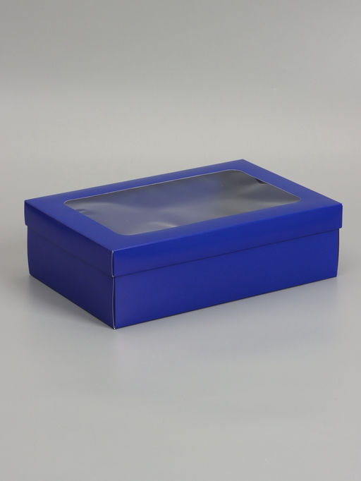 Цена за 5 шт. Коробка складная, крышка-дно «Синяя», с окном 30×20×9 см