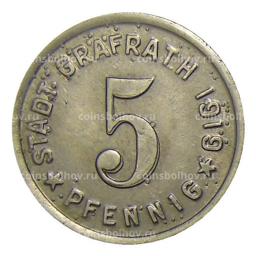 Монета 5 пфеннигов 1919 года Германия Нотгельд Графрат