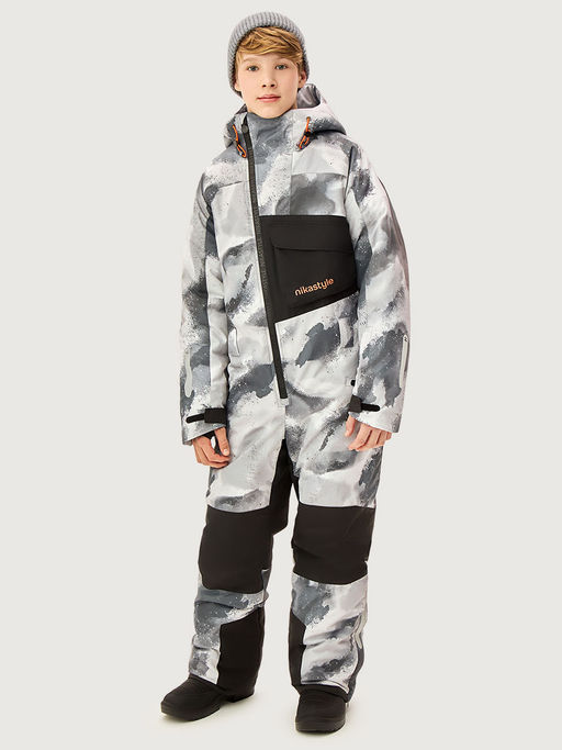 Каждая деталь продумана, чтобы обеспечить комфорт: смещенная центральная застежка с водонепроницаемой молнией, ветрозащитная планка, карманы на молнии и накладной карман с клапаном на липах, внутренний карман на молнии, капюшон с кулисой для регулировки объема, карман на рукаве под ски-пасс, регулировка ширины по низу рукава, внутренние бретели для возможности снять верхнюю часть изделия в помещении. Мы все продумали до мелочей, поэтому модель дополнительно оснащена трикотажными манжетами с прорезью под палец, область колен и шов сидения проклеены, места повышенного трения выполнены из усиленной ткани, снегозащитные муфты на брючинах, регулировка объема брюк под обувь на молнии, светоотражающие элементы для безопасности ребенка в темное время суток.