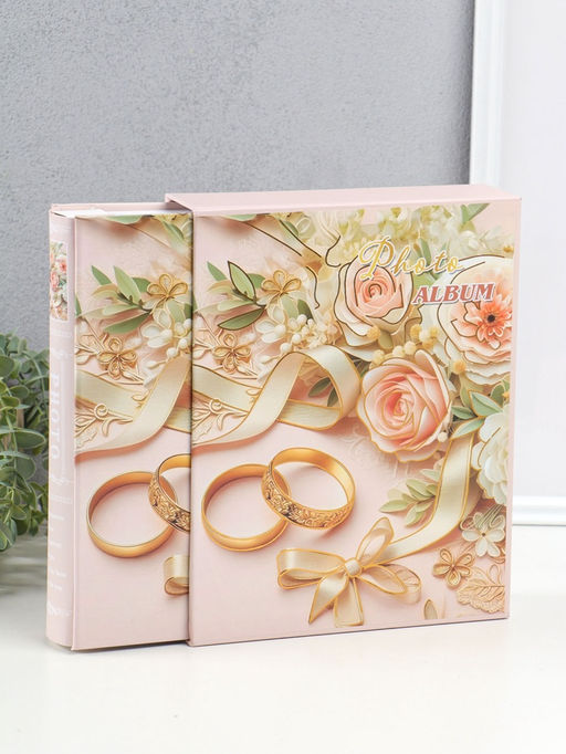 Фотоальбом на 200 фото 10×15 см «Кольца молодых и букет с розами», в коробке, 5.5×20.5×26 см