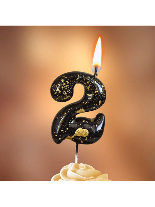 Цена за 2 шт. Свеча в торт «Черные брызги», цифра 2