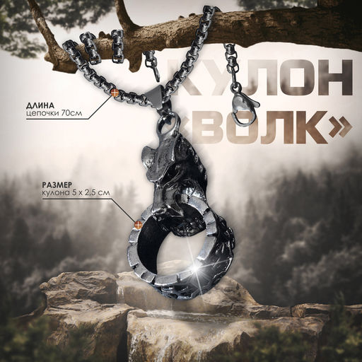 • Кулон «Волк» кольцо, цвет чернёное серебро, 70 см