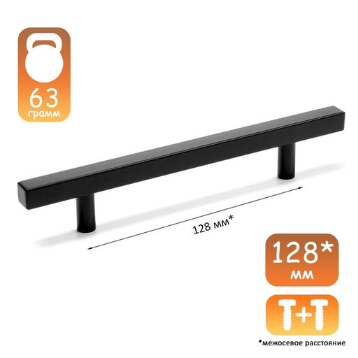 • Ручка-рейлинг квадрат CAPPIO, м/о 128 мм, L=200 мм, цвет черный