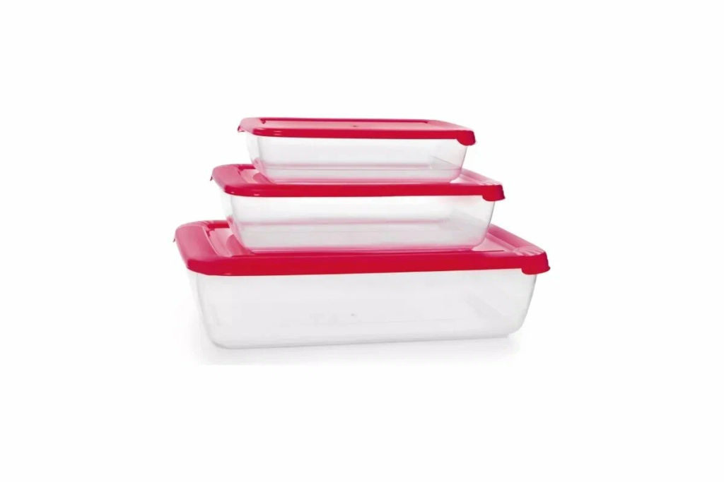 • Контейнеры 3шт (0,45л+0,9л+1,9л) д/СВЧ прямоугольные Лайт (малиновый)