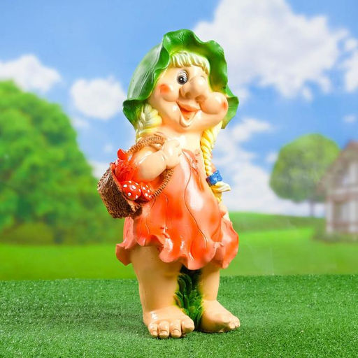 Садовая фигура из полистоуна «Девочка - гном с корзинкой», 26×18×52 см