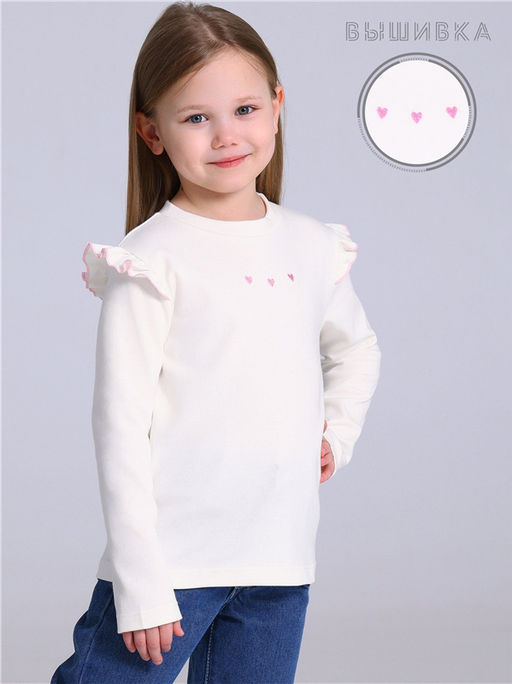 Уценка лонгслив,хлопок 100%,интерлок / хлопок 100%,сливки1 / - / Три сердечка вышивка / - / - / -,Лонгслив для девочки выполнен из интерлока - тонкого хлопкового полотна. Изделие прямого силуэта, с длинными рукавами и круглым вырезом горловины. Украшено крылышками с обработкой краев тонким ролевым швом. На полочке вышивка. Уход: только машинная стирка (руками не стирать!) при температуре 40 градусов, без предварительного замачивания. Изделия с вышивкой и декором перед стиркой необходимо вывернуть на изнаночную сторону.