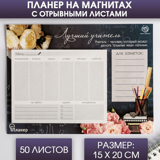 • Планер на магнитах с отрывными листами «Лучший учитель», 50 л., 15×20 см, размер части для заполнения 10×13 см