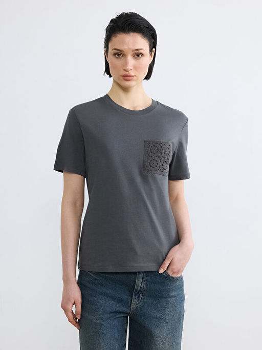 Bisiklet Yaka Nak??l? Kad?n Ti??rt