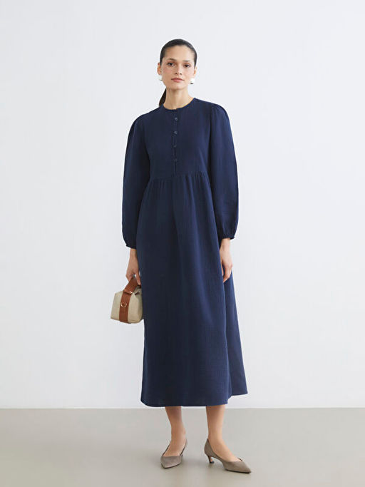 Bisiklet Yaka Balon Kollu M?slin Elbise